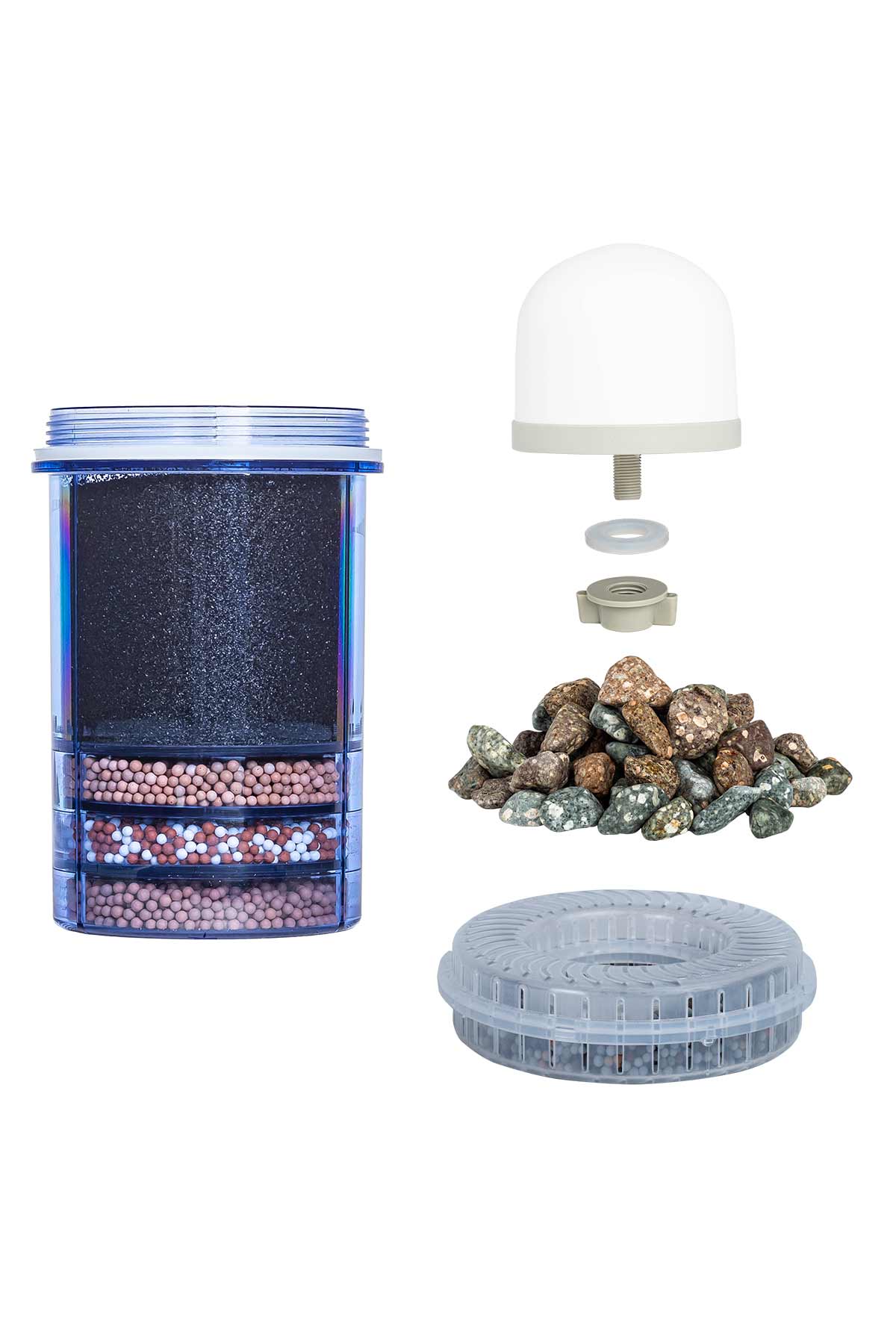 Set; meerstappen filter, keramisch filter, alkalische ring en mineraalstenen
